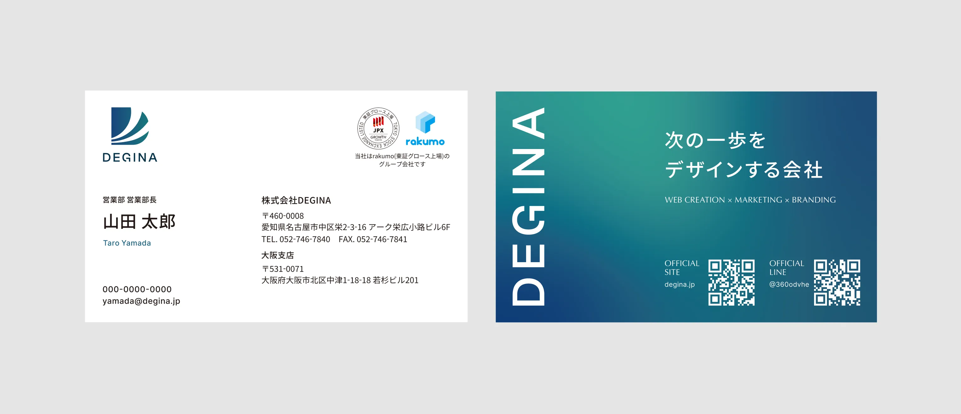 DEGINAでは、ヒアリングシートをもとにデザイナーが名刺を制作し、印刷・納品まで一貫して対応します。起業・開業時の新規制作から、ロゴやWebサイトと合わせた依頼まで幅広く承っています。